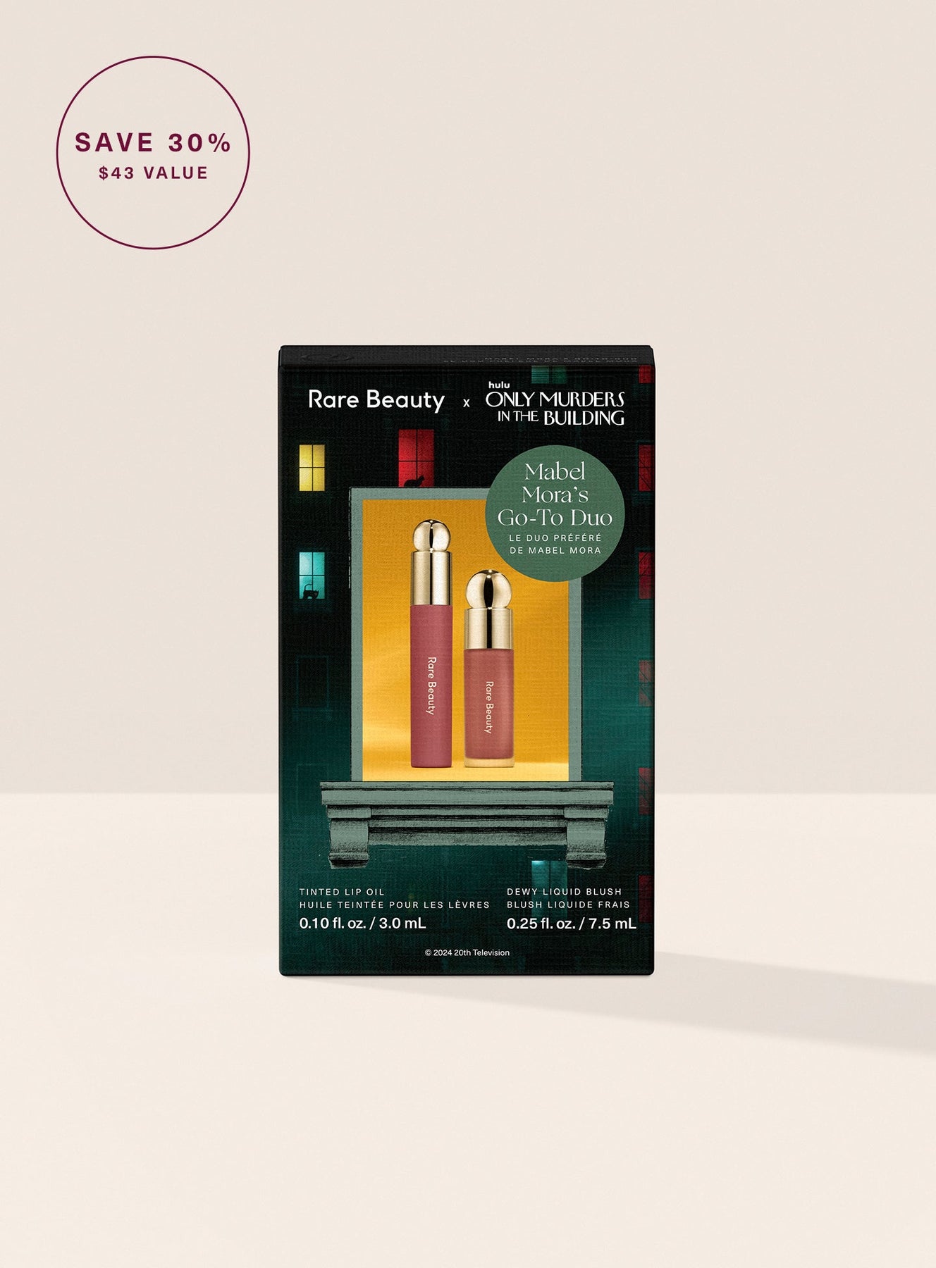 En colaboración con Only Murders in the Building de Hulu , este set de productos imprescindibles para el día a día de Mabel Mora incluye nuestro colorete líquido Soft Pinch, el más vendido, en un nuevo tono exclusivo, y el aceite labial con color Soft Pinch en tonos marrones rosados ​​fáciles de llevar .